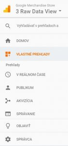 Služba Google Analytics v súčasnosti obsahuje hlavné karty usporiadané pod sebou: