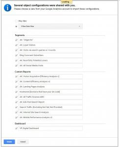 Môžete si vybrať, ktoré položky chcete importovať a aj do ktorého zobrazenia chcete vykonať import. Samozrejme, že vaše online obchodné ciele a KPI sú jedinečné, niekedy však na začiatok nezaškodí malá inšpirácia.